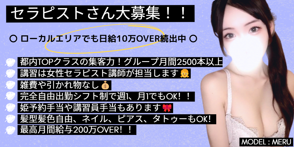 待遇 | ・当店掛け持ちOKですので、暇な時間や掛け持ち先とのバランスを見て効率よく働けます ・ツイッターでは当店にインフルエンサーがいます フォロワーも多くSNS苦手でもスタッフと既存セラピストで即座に新規アカウントを育てます ・セラピスト同士ぎすぎすしてません 地域密集型故にぬくもりのある方向のツイッター&ブルースカイを運用をしています 客層がいいです ・シフトはお好きな時間で出してください。1日数時間で3万、5万、8万稼げてしまうとっても効率の良い高収入なお仕事です。ノルマ無し、雑費などの引かれ物なしで全額日払いになります! ✴︎講習は女性講習員です✴︎ 講習は女性が担当し、未経験の方でもすぐにお仕事ができるように丁寧に施術を教えます。過去にセクハラ講習などで嫌な思いをされた経験者の方もご安心ください 当店ではその子にあった施術の流れを教えるべく、講習員は女性セラピストを複数人ご用意しております ・新米店です 常連のお客様はかなり増えてきましたがやはり、暇な日や流れの悪い日がたまにあります ツイッターかブルースカイ運用はマストです |